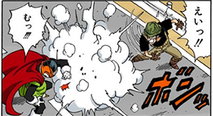 封鎖對方視線範圍的道具,投進地上後就會產生大量的煙,跟紫上士使用的煙霧彈十分相似。